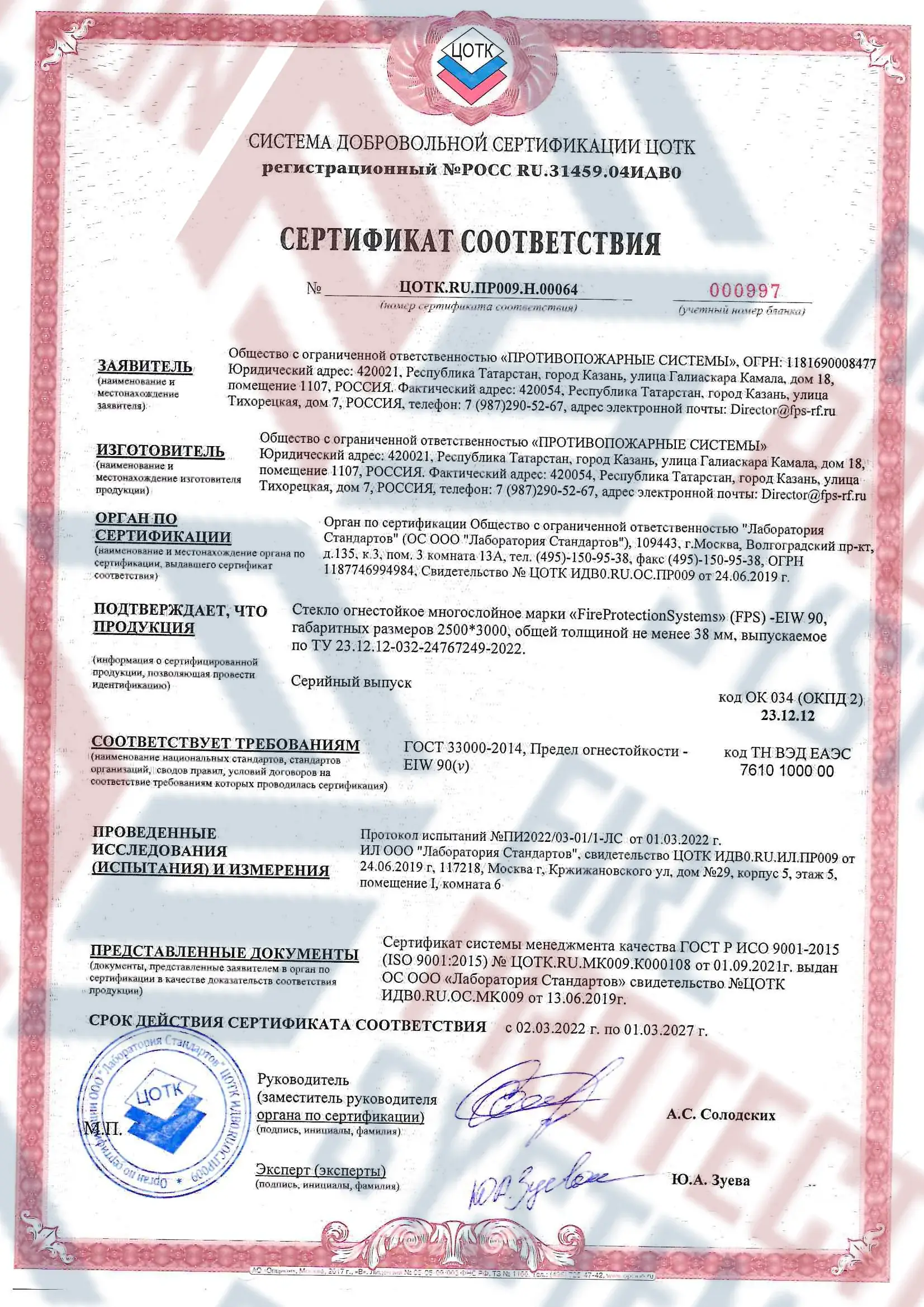 Соответствие стандартам — сертифицировано согласно международным и российским нормам пожарной безопасности.